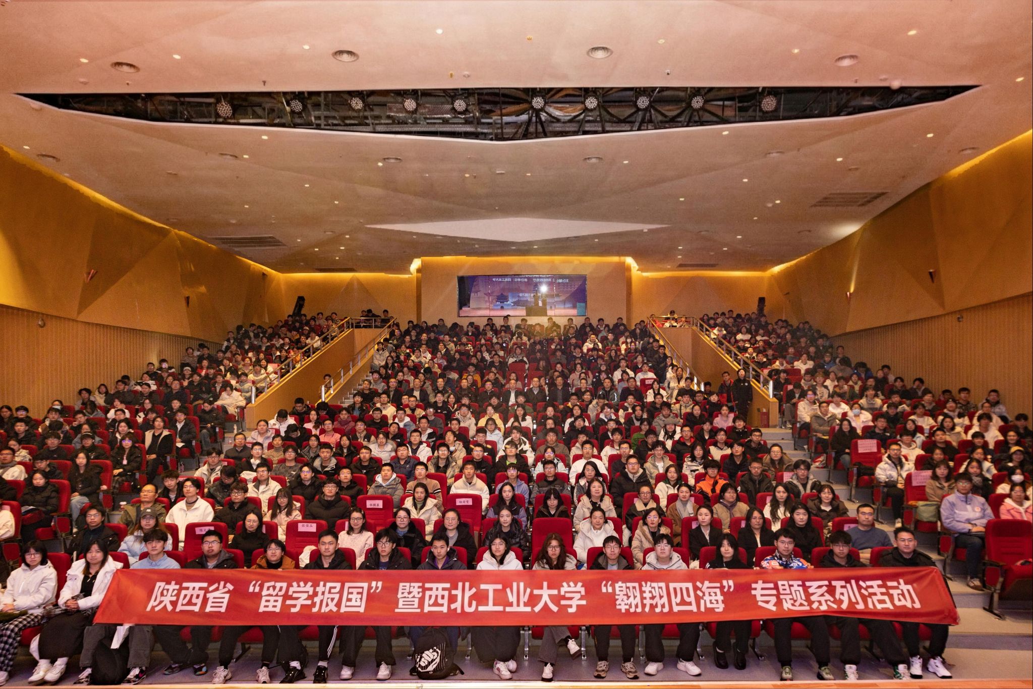 翱翔四海看世界,留学报国逐梦想。在陕西省教育厅指导和支持下,2026年1月7日,陕西省“留学报国”暨“翱翔四海”专题系列活动在西北工业大学长安校区拉开序幕。陕西省教育厅对外合作与交流处处长文通,西北工业大学副校长岳晓奎出席活动。西北工业大学教授、国家级青年人才王宇恒教授作留学报国主旨报告,陕西省外事办公室、西安市公安局相关专家等开展“平安留学”专题培训。会议由学校国际合作处副处长陈俊主持。