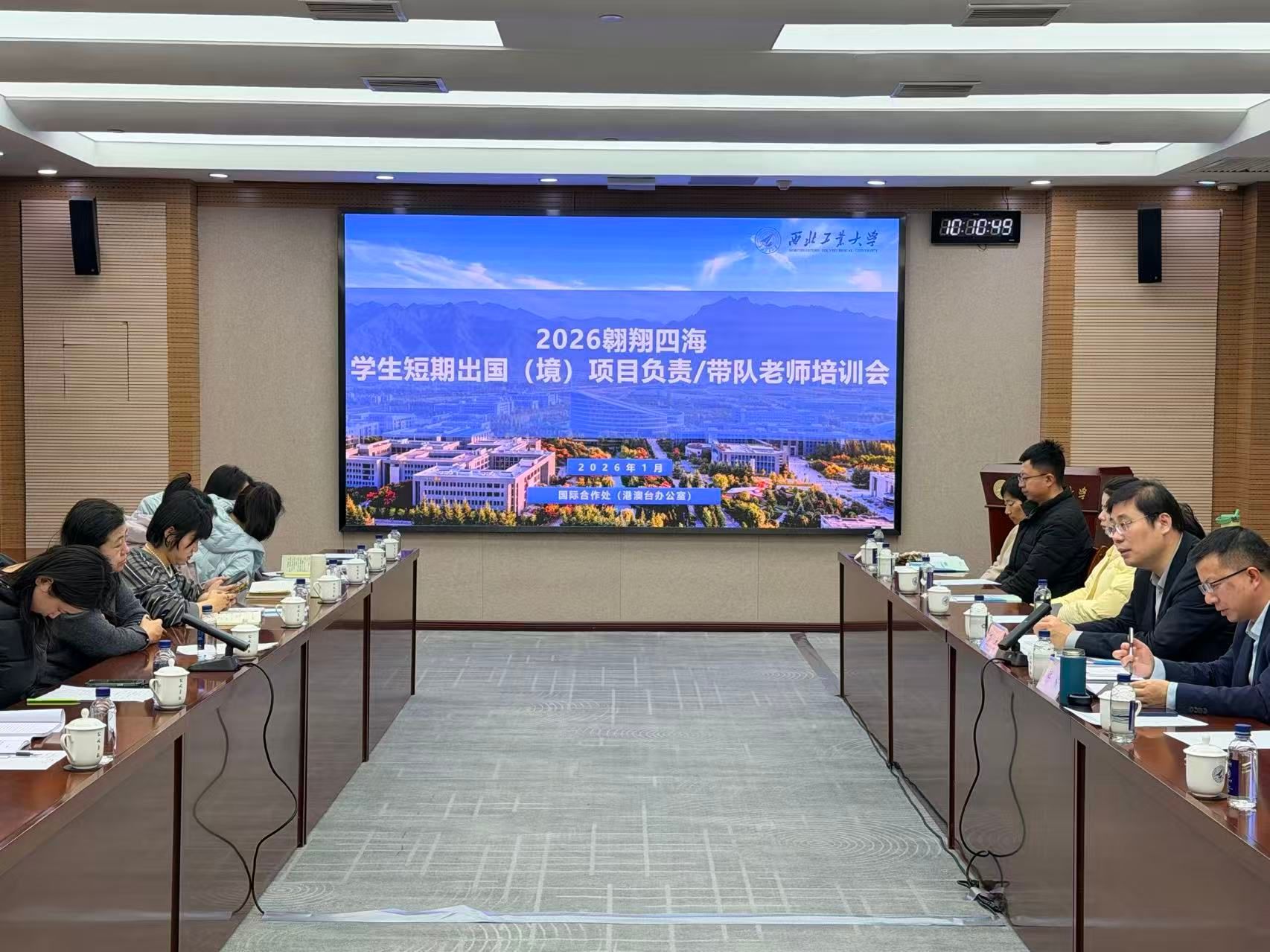 1月14日,国际合作处(港澳台办公室)召开2026年学生出国(境)工作启动会暨“翱翔四海”寒假项目带队老师培训会。国际合作处处长(港澳台办公室主任)孔杰出席会议并讲话,航空学院副院长万方义应邀参会,各培养单位外事秘书、2026年“翱翔四海”寒假项目带队老师参加会议。会议由国际合作处副处长陈俊主持。